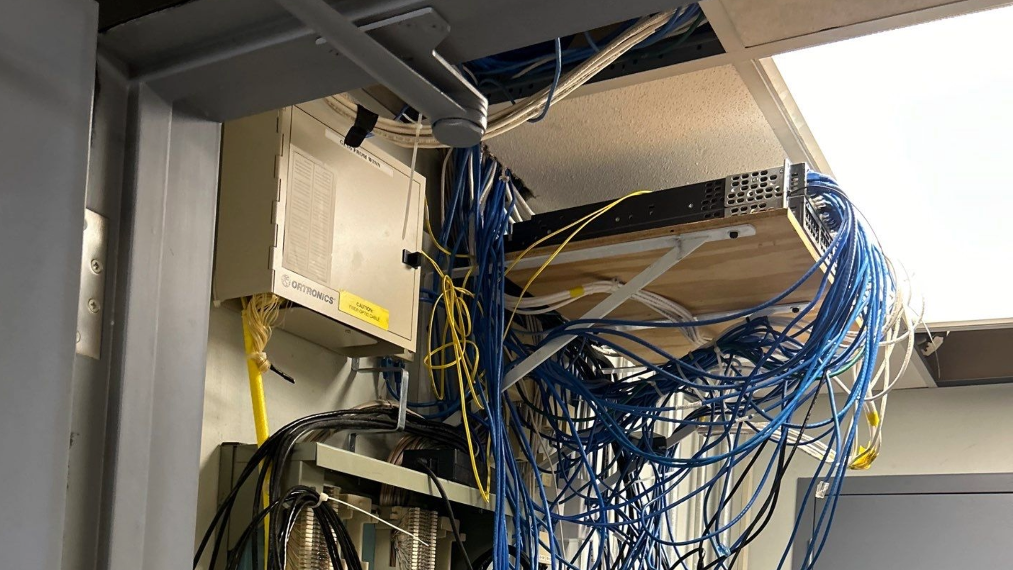 BridgeCable.com is keeping busy this New Year! We recently traveled to Center City Philadelphia to help a big company with their Internet problem. After signing in with front desk and removing our rain jackets, we go straight to the network closet.